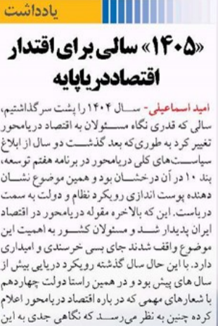 «۱۴۰۵» سالی برای اقتدار اقتصاددریاپایه