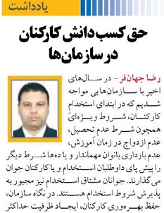 اقتصادسرآمد- رضا جهانفر- در سالهای اخیر با سازمانهایی مواجه شدیم که در ابتدای استخدامِ کارکنان، شروط ویژهای همچون شرط عدم تحصیل، عدم ازدواج در زمان آموزش، عدم بارداری بانوان مهماندار و یا دهها شرط دیگر را پیش پای داوطلبان استخدام و یا کارکنان جوان میگذارند. جوانان مشتاق استخدام نیز مجبور به پذیرش شروط استخدام هستند. در نگاه سازمان، حفظ بهرهوری کارکنان، ایجاد ظرفیت حداکثر ماندگاری کارکنان در سازمان، حفظ هرم سازمانی و توازن ساختاری و پیشگیری از توقعات برخواسته از کارکنان جوان تحصیل کرده نظیر مطالبه تغییر وضعیت شغلی و دهها دلیل دیگر منجر به اتخاذ چنین تصمیماتی شده است. این در حالی است که قانون مخالف این رویه است.