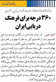 ۳۶۰ درجه برای فرهنگ دریایی ایران