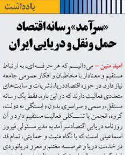 «سرآمد» رسانه اقتصاد حمل ونقل و دریایی ایران