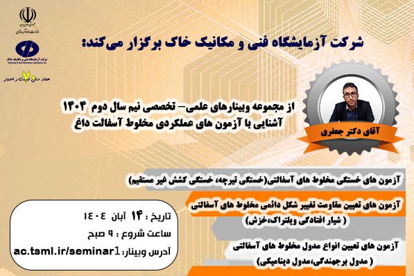 مدیرکل دفتر نظامات آموزشی و پژوهشی شرکت آزمایشگاه فنی و مکانیک خاک خاطر نشان کرد: این وبینار با تدریس استاد جعفری در تاریخ 17 آبان امسال در بستر مجازی از ساعت ۹ صبح برگزار و علاقمندان، کارشناسان و متخصصان فنی و مهندسی سراسر کشور میتوانند از طریق نشانی Ac.tsml.ir/seminar1 در این وبینارها شرکت کنند.