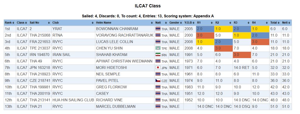 • قهرمان کلاس ILCA7 کشور تایلند در سال ۲۰۲۵