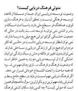 اقتصادسرآمد- اهمیت پرداختن به موضوع فرهنگسازی عرصه دریا بخصوص بهرهوری و بهره برداری از اقتصاد دریامحور که به توسعه همه جانبه کشورکمک وافر و شایانی میکند ما را در روزنامه دریایی اقتصادسرآمد بر آن داشته است که مکرر به مبحث ضرورت فرهنگسازی دریایی در ایران بپردازیم .